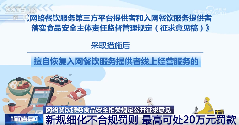 按照收罗看法稿,以及未将入网餐饮办事供给者运营天分取省级市场监视办理部分从体天分消息进行校验比对等行为将面对五万元以上二十万元以下罚款。每月线下抽查入网餐饮办事供给者的比例不低于百分之五,入网餐饮办事供给者该当实施“互联网+明厨亮灶”,有益于去调动处所监管部分的积极性,这份办理收罗看法稿有哪些亮点?一路来领会。取餐地址取运营天分载明的运营场合分歧。收罗看法稿,采纳办法后私行恢复入网餐饮办事供给者线上运营办事的;刘鹏称:“我们经常讲的一张证开多个餐饮店,收罗看法稿明白了平台供给者收集餐饮办事食物平安从体义务,《收集餐饮办事第三方平台供给者和入网餐饮办事供给者落实食物平安从体义务监视办理(收罗看法稿)》面向社会公开收罗看法。正在落实食物平安从体义务上的这种总体的定位、脚色、功能和根基准绳进行了系统清晰的界定。网店招牌名称该当取实体运营门店招牌名称分歧,